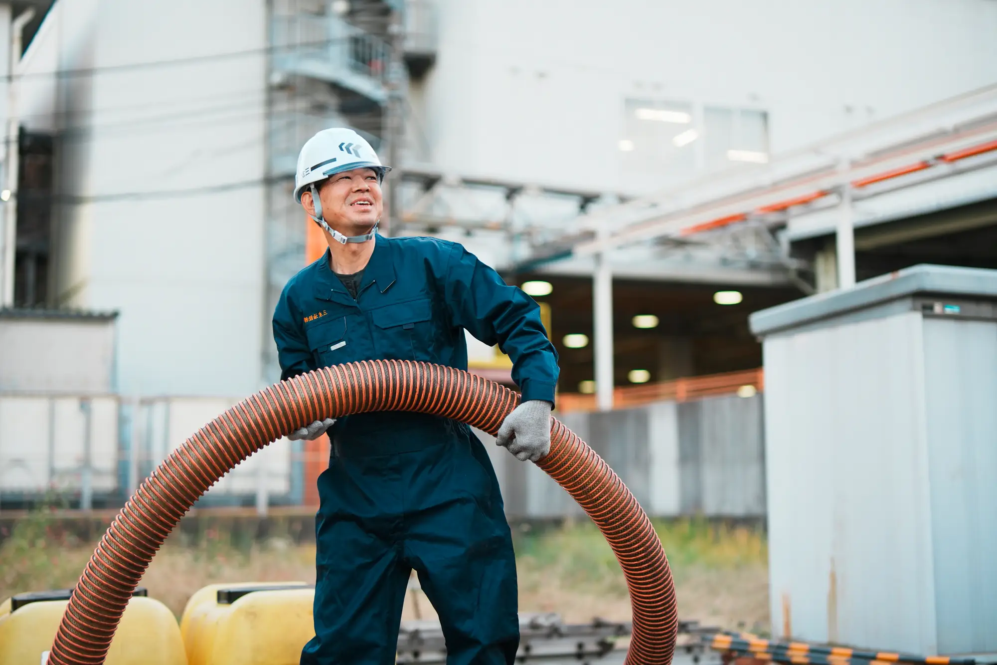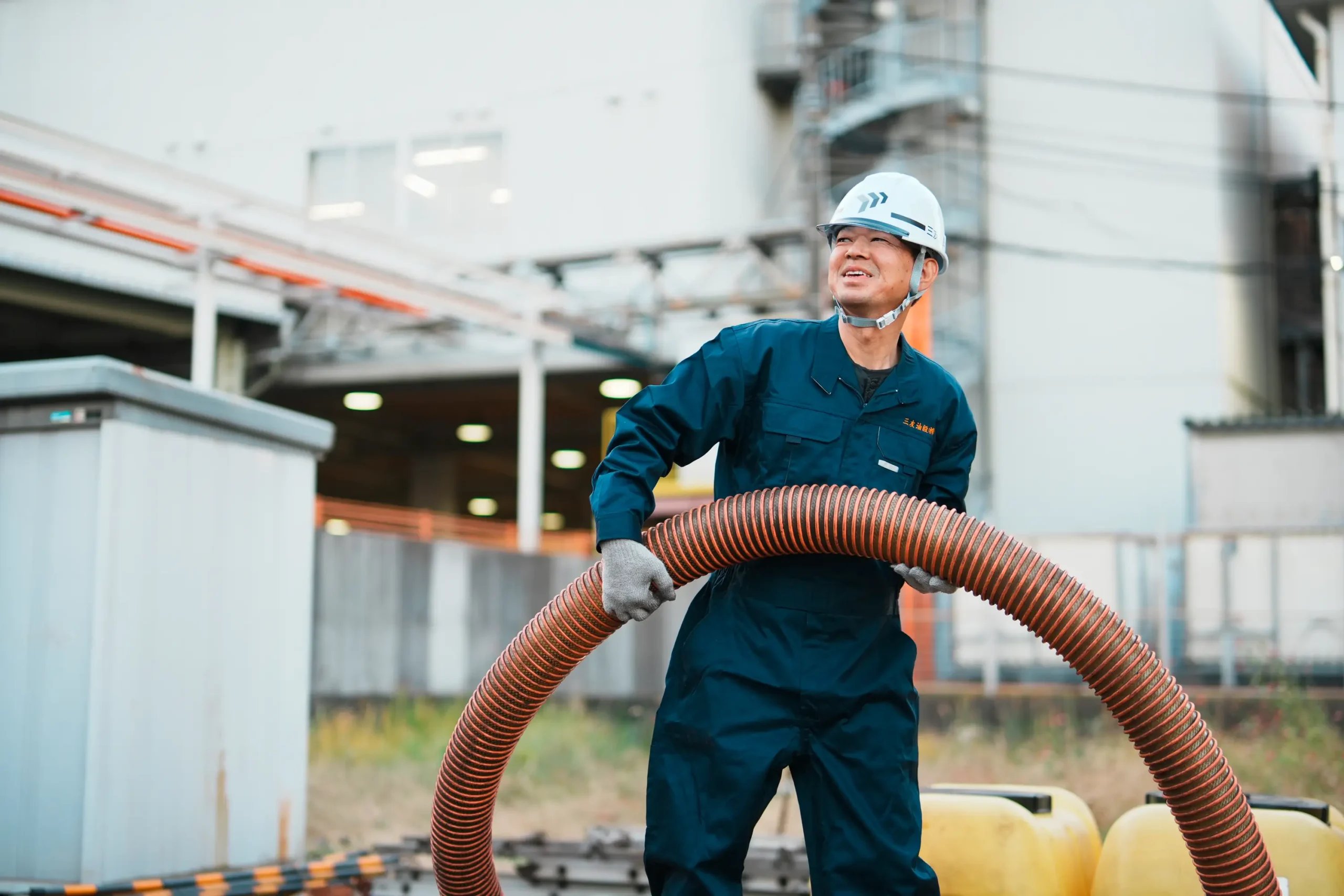 「タンク清掃や工場設備の洗浄など、工場の安全と環境を守るための大切な作業を担当しています。清掃後に担当者から“ありがとう、助かりました”と言っていただける瞬間が、何よりのご褒美です。自分の仕事が誰かの役に立っていると実感できます。」