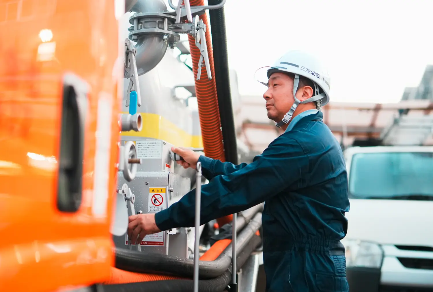 「タンク清掃や廃棄物の回収など、生活環境や工場の安全を守る大切な仕事です。作業の段取りを考えて進め、予定通りに終わらせられた日は“今日も良い仕事ができた”と自然と誇らしくなります。自分の手で街の安心を支えている感覚は、この仕事ならではですね。」