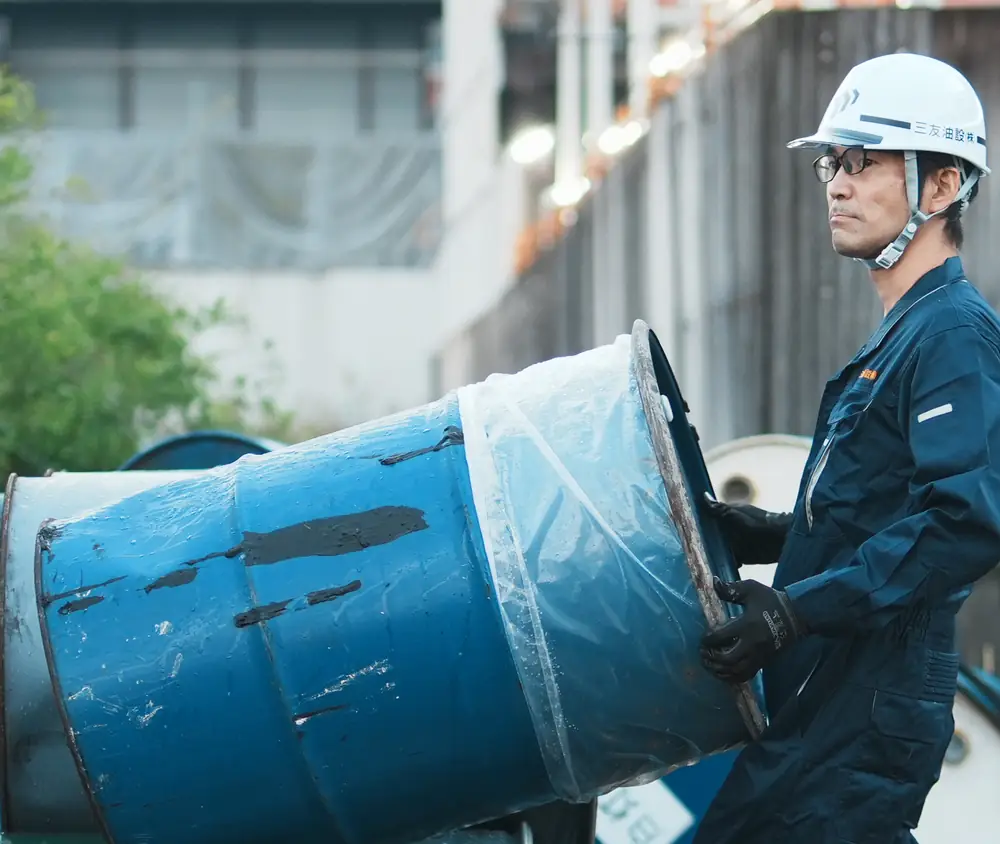三友油設は、産業廃棄物の収集運搬、各種タンク・プラントの清掃、地下タンクの漏洩検査まで、社会の裏側にある「見えない基盤」を支えることで、工場や事業所の安全と、地域の環境を守っています。